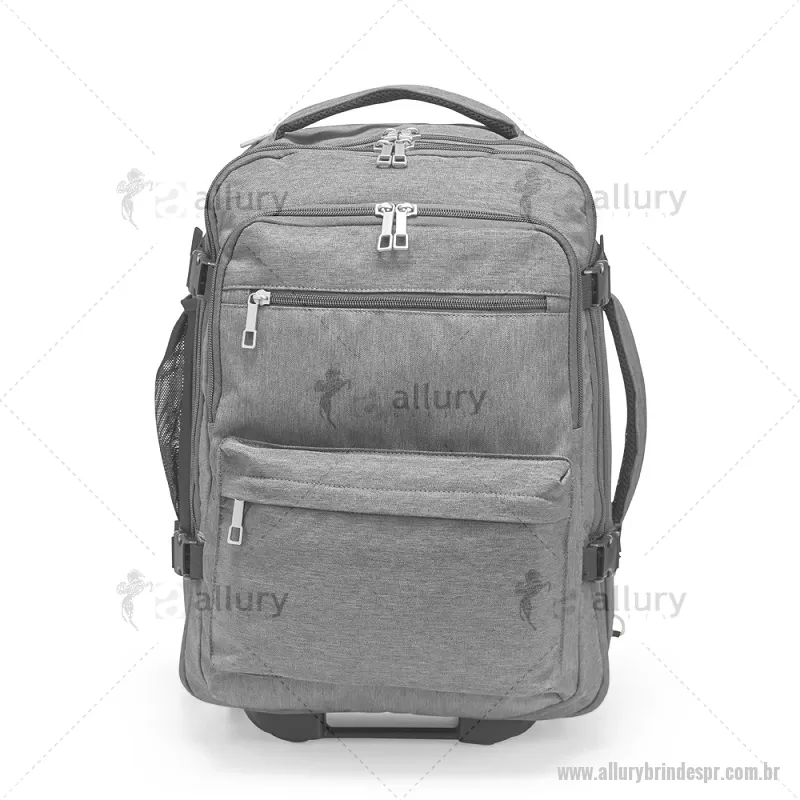 Mochila Poliéster 24L Mochila em poliéster impermeável com capacidade para até 24 litros. Possui compartimento interno principal com dois bolsos de fechamento em zíper e cinta compressora para roupas. Conta ainda com dois compartimentos frontais, sendo um deles com divisória para notebooks de até 15,6 polegadas, um par de bolsos menores com fechamento em zíper e um bolso lateral em tela de nylon. Dispõe também uma alça retrátil contida em um compartimento fechado em zíper e duas rodinhas para oferecer mais uma possibilidade de uso, além de duas alças de mão, uma na parte superior e outra na lateral, permitindo o transporte pela horizontal, e duas alças para as costas com revestimento em tecido acolchoado. Altura : 45 cm x Largura : 31 cm x Profundidade : 16 cm Peso aproximado (g): 2409 - - ALLPRMC241