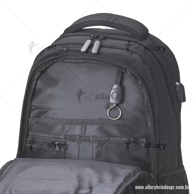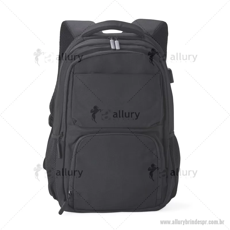 Mochila de Poliéster USB 28 litros com seis compartimentos, sendo o principal com bolso para notebook 15,6 e tablet 12,4. Com divisórias internas para acessórios e porta chave, a mochila possui adaptador USB externo, bolsos laterais telados, duas alças de mãos, área costada e alças para as costas com revestimento espumado. Altura : 43 cm x Largura : 31 cm x Profundidade : 15,5 cm Peso aproximado (g): 786 - - ALLPRMC248