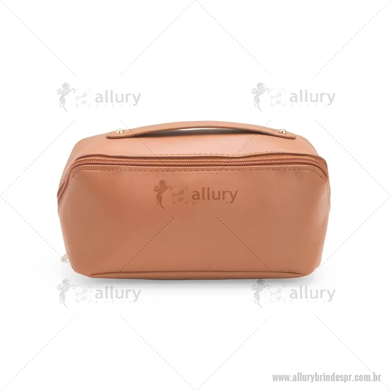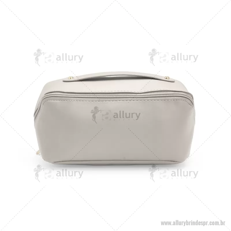 Nécessaire em (PU) poliuretano impermeável com abertura em 180 graus inspirada no formato de concha. O compartimento interno conta com dois bolsos laterais abertos e um, localizado na parte central, com fechamento em zíper. Possui alça para transporte. Altura : 11 cm x Largura : 22,5 cm x Profundidade : 9,5 cm Peso aproximado (g): 108 - - ALLPRNC143