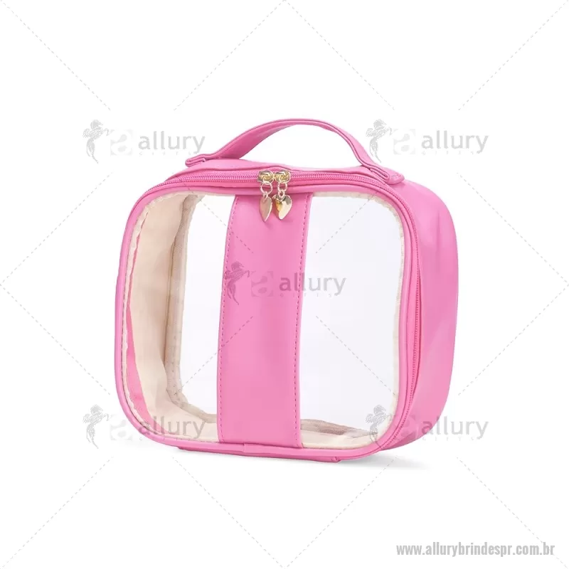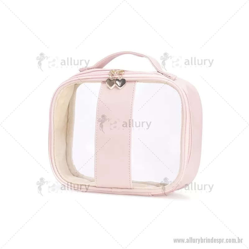 Necessaire impermeável de PVC e PU tamanho P, parte interna com revestimento em tecido, possui alça superior para as mãos, e detalhe dourado em formato de coração no zíper. Medidas nécessaire: 17 cm x 20,5 cm x 7,2 cm Peso aproximado (g): 134 - - ALLPRNC100