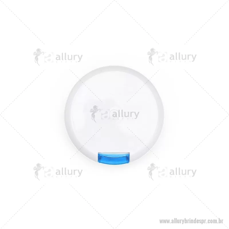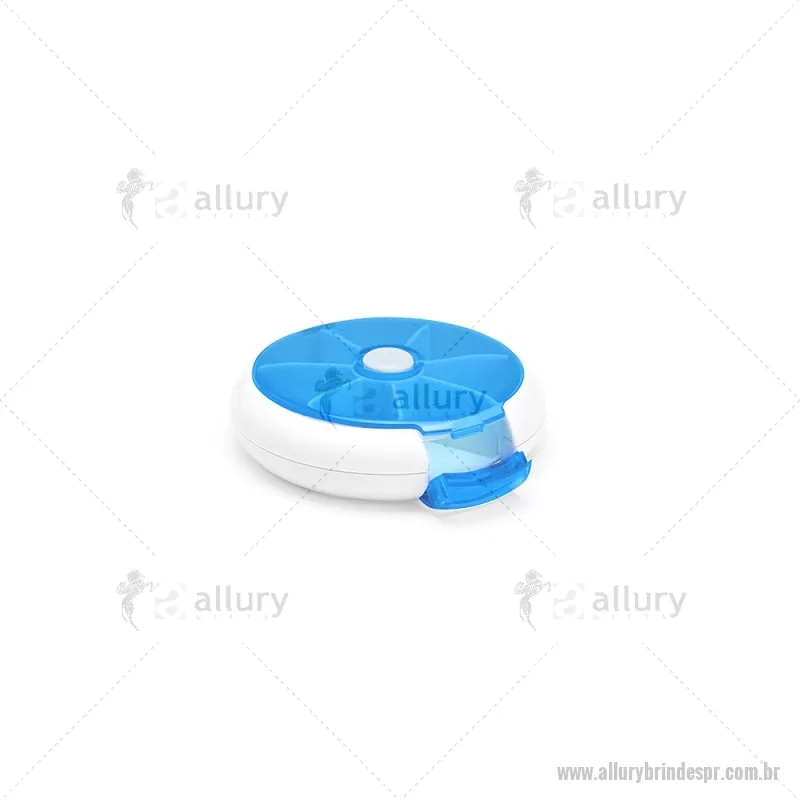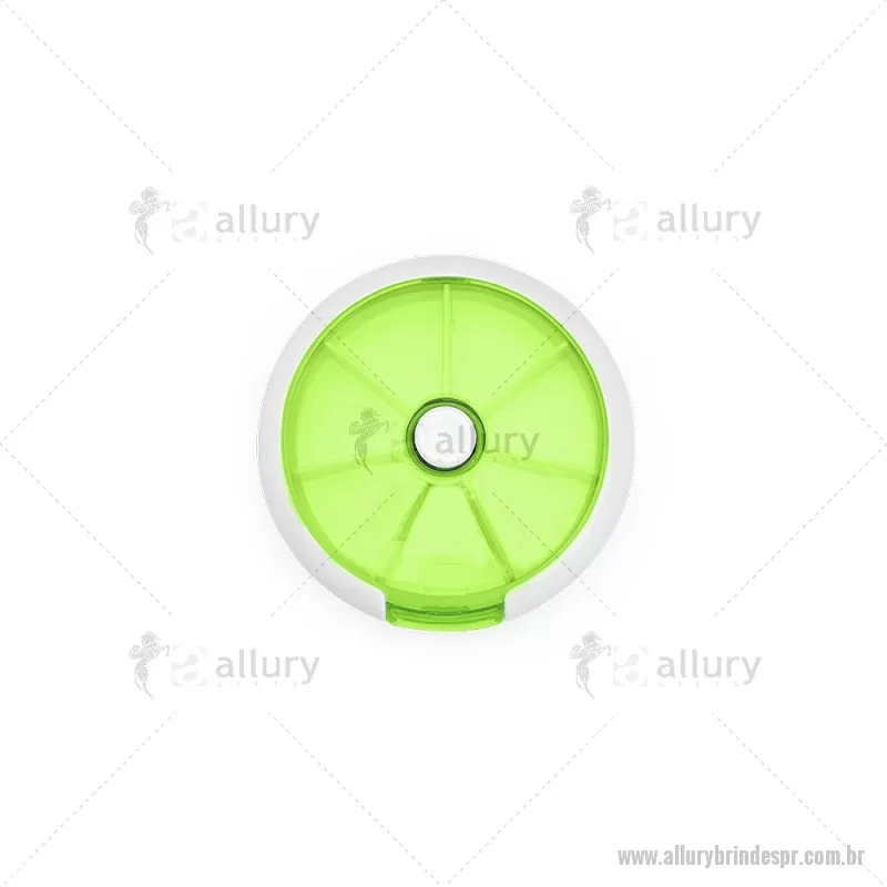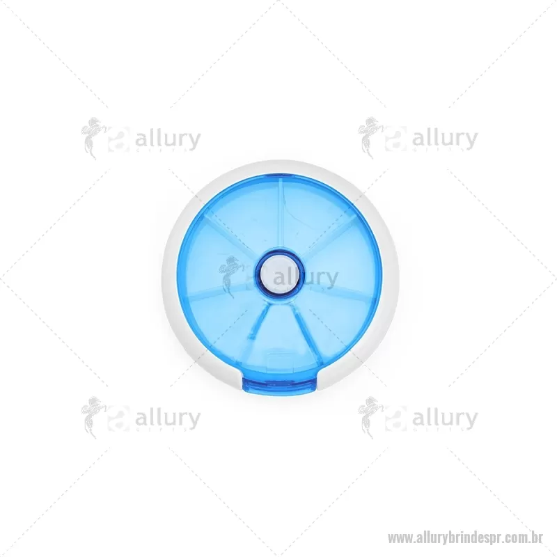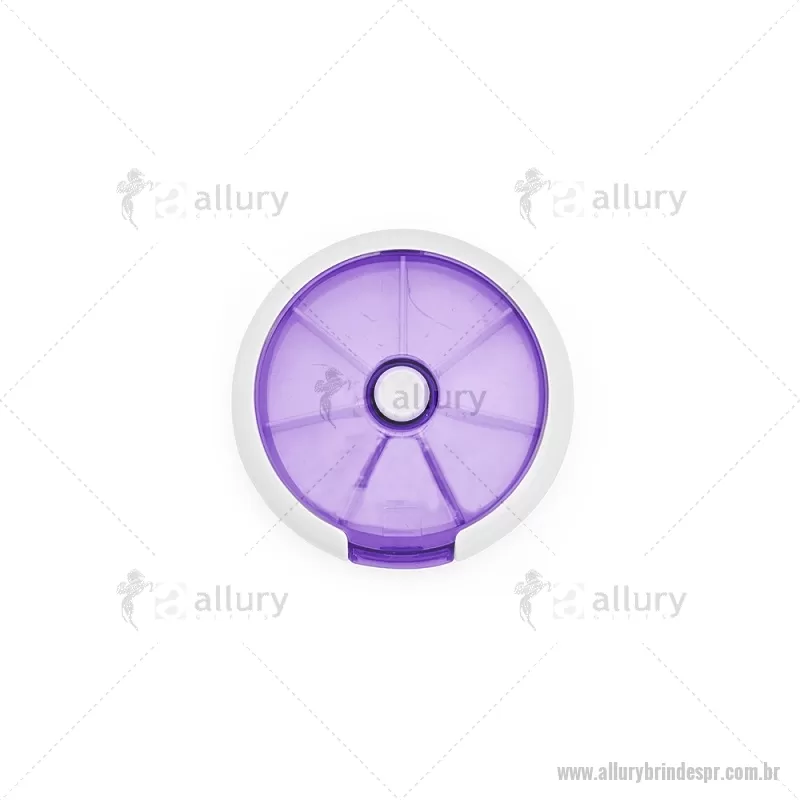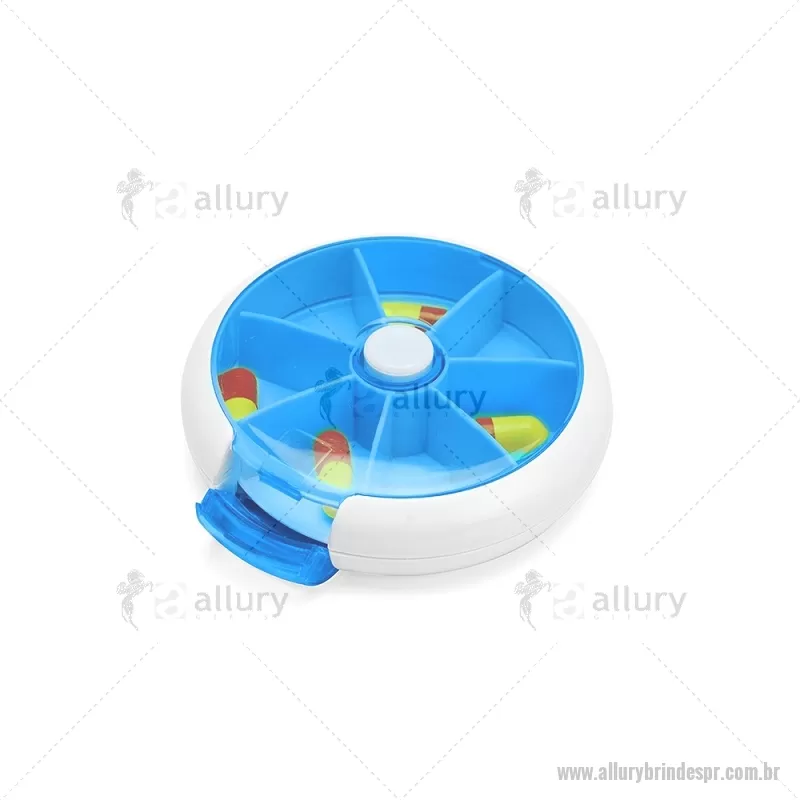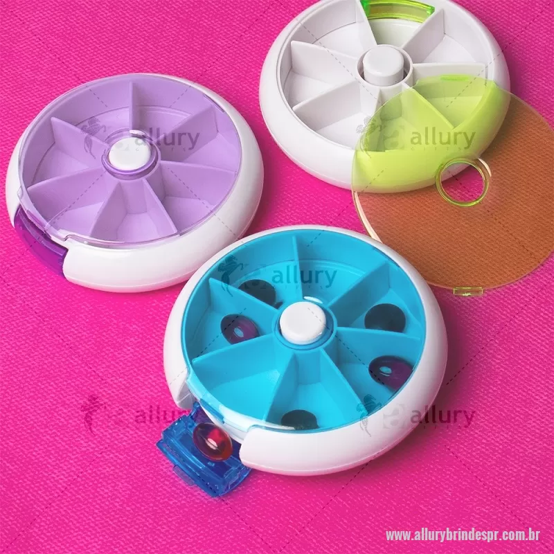 Porta-Comprimidos Plástico Descrição: Porta-comprimidos em plástico. Com design compacto, possui sete divisórias e um botão de acionamento que movimenta o mecanismo de giro de compartimentos a cada clique.permitindo o acesso ao conteúdo por meio de uma abertura lateral. Largura : 9 cm x Espessura : 2,6 cm x Comprimento : 9 cm Peso aproximado (g): 50 - - ALLPRPCP018