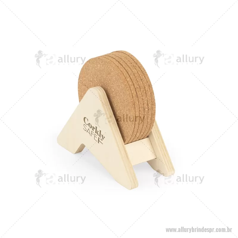 Porta copos em madeira com 6 bases para copos em cortiça. Desfrute da sua bebida evitando marcas na mesa. Certificação EU Food Grade. A cor e o resultado da impressão nos materiais naturais pode variar entre produtos. medidas: 140 x 92 x 78 mm Peso do Produto (g.): 80 - - ALLPRPCO010
