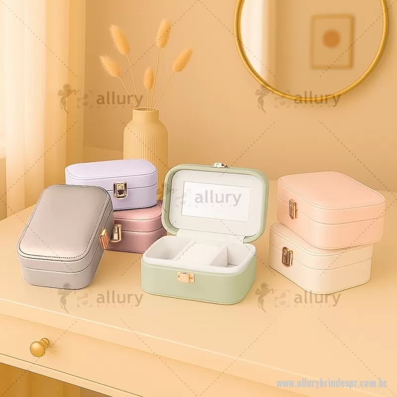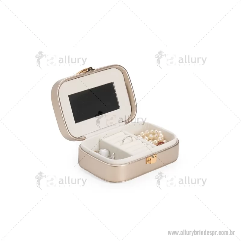 Porta-joias com espelho em poliuretano (PU) e revestimento interno em tecido aveludado. Conta com espelho interno, duas divisórias, repartição almofadada com ranhuras e trava de segurança. Medidas produto: Altura : 5 cm x Largura : 10 cm x Comprimento : 15 cm Peso aproximado (g): 167 - - ALLPRFEM123