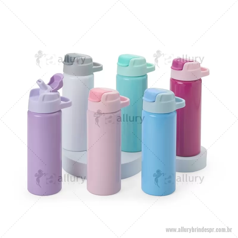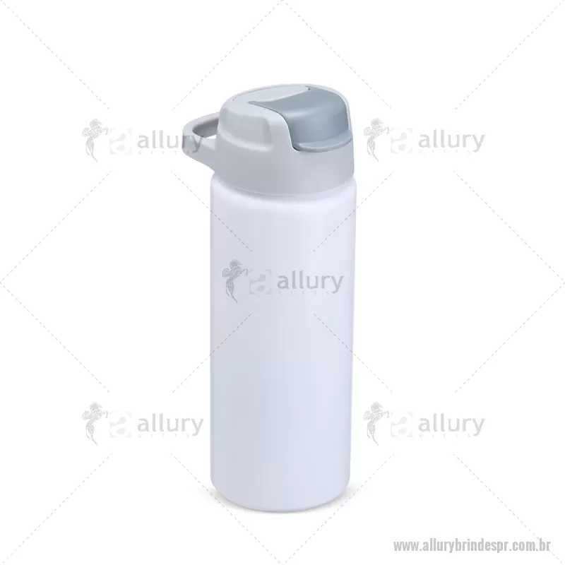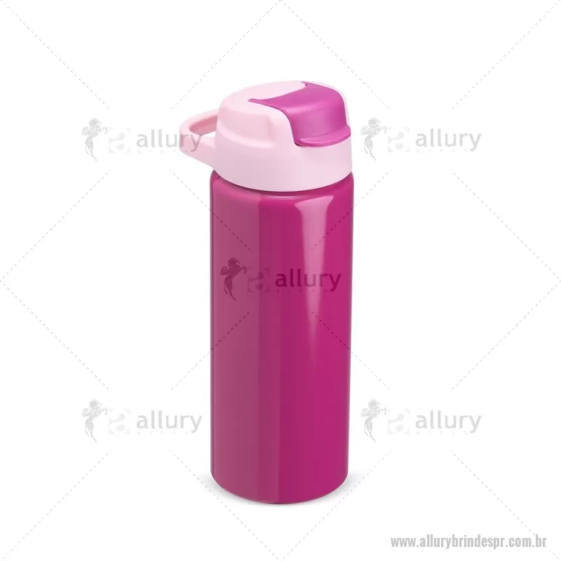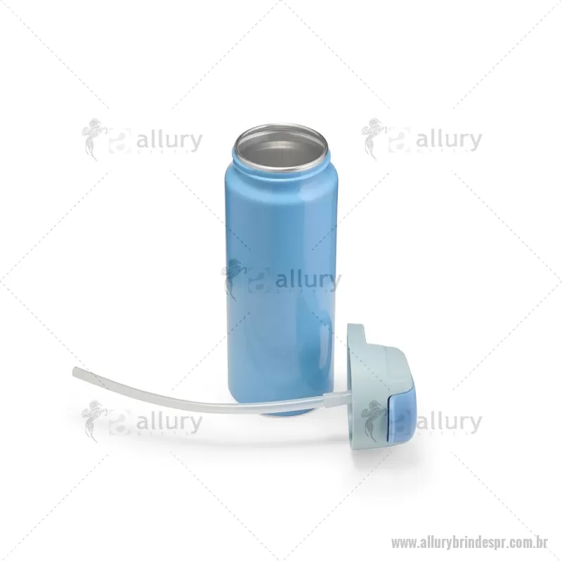 Squeeze de alumínio com capacidade máxima de 600ml. Possui tampa rosqueável em plástico com alça para transporte, protetor de bocal, bico flip top e canudo interno em plástico. Altura : 20,5 cm x Largura : 7 cm x Circunferência : 22 cm Peso aproximado (g): 117 - - ALLPRSQM087