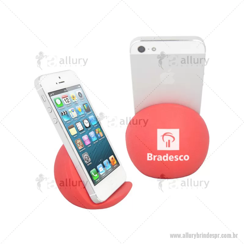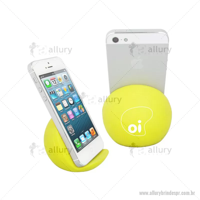Porta celular / Apoio para smartphone de mesa Personalizado. Feito em vinil oca e disponível em várias cores. Material: Vinil - Especificação: Vinil (Policloreto de vinil) Disponível nas cores: vermelho, azul, azul escuro, azul claro, verde, verde escuro, verde claro, amarelo, laranja, preto, branco. Informação: Pantones específicos a partir de 1000 peças. Tipo de gravação: Tampografia Area de gravação: 40mm Ø Medida Produto: 65mm A x 75mm L x 70mm Peso: 45g Quantidade Mínima: 100 un - - ALLPRTEC065