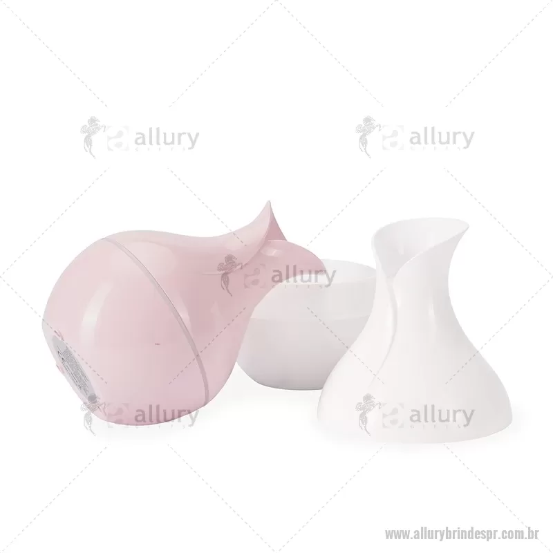 Umidificador de ar em plástico com design tipo vaso, iluminação LED e reservatório de 200 ml. Oferece modos de névoa contínua ou intermitente e funciona conectado a uma fonte de energia via entrada USB-C. Acompanha filtro de algodão e cabo USB-C. - - ALLPRTEC537